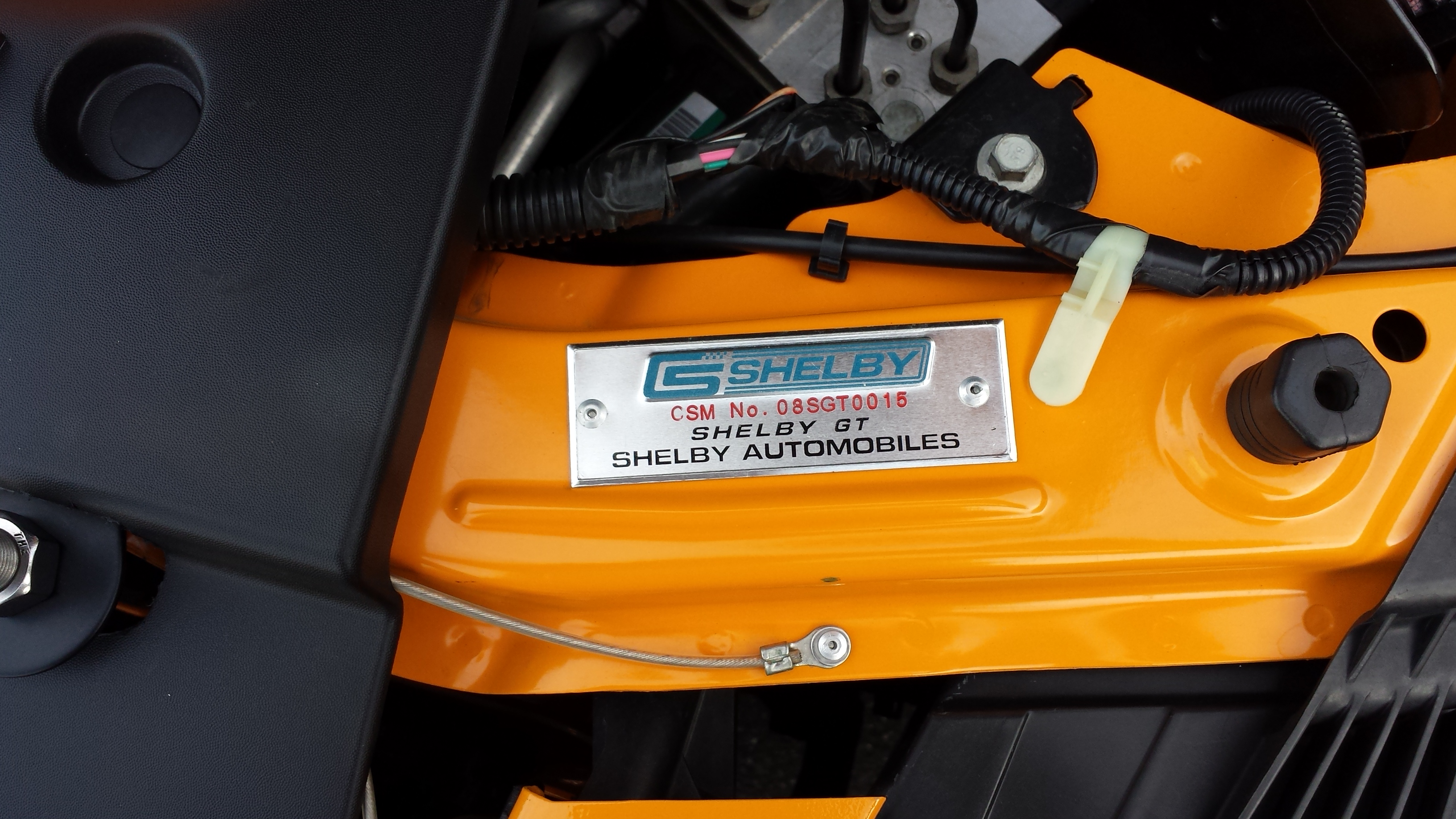 SAI painted the Shelby GT-C ('C' for California) models in grabber orange with silver lemans racing stripes, rear brake ducts, a hood scoop, and customized door sills. Ford initially assembled these cars in the USA at Ford's Flat Rock, Michigan plant. This car was #422 off the Ford factory floor, another collectible feature. All 215 Shelby GT-Cs were signed by the late and great Caroll Shelby on the inside of the passenger sun visors using a silver Sharpie. The SAI registration number for this car is 08SGT0015.